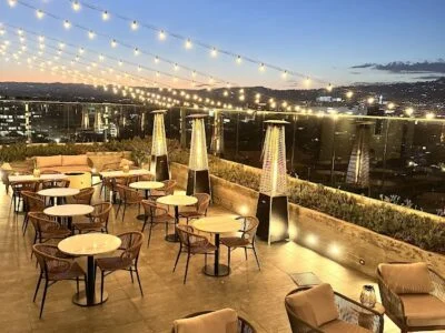 Nava crowns the AC Hotel Beverly Hills with a Mediterranean-leaning tapas menu, strong cocktails, and wraparound skyline views. It feels more like a stylish lounge than a formal restaurant, making it a go-to for share plates and drinks before or after a night out.