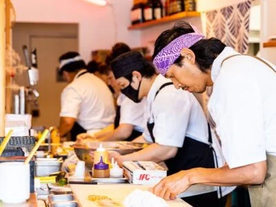 An Arts District sushi spot that leans into fusion with unexpected touches like cajun-spiced rolls and charred vegetables alongside traditional bento formats. The dog-friendly patio and happy hour program make it a natural gathering point for groups who want to spread out and linger. It plays best as a casual, shared-plates-and-drinks destination rather than a purist omakase experience.