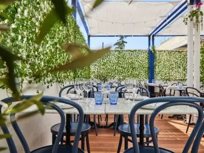 Casual Greek taverna from the Freedman's team serves Aegean-inspired souvlaki and mezedes on a vine-covered parklet patio. Charcoal-grilled meats complement an all-Greek wine list in this neighborhood restaurant that transforms strip mall dining into island-style romance after dark.