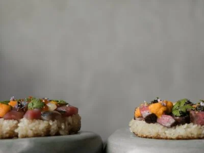 Spicy tuna crispy rice, Uni and wagyu hand roll, Gindara miso black cod