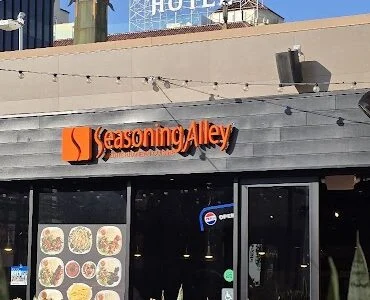 Seasoning Alley anchors a counter in the Ovation Hollywood dining deck, serving kabob plates, falafel, and salads to shoppers and moviegoers. Food comes out quickly but leans fresher than typical mall fare, with grilled meats, hummus, and salads built for mixing and matching.