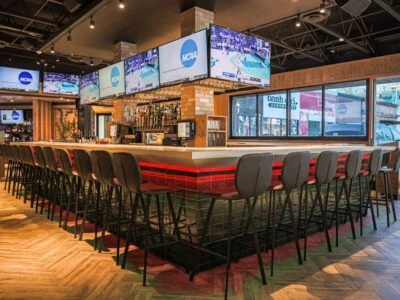 What Makes it Special: An event-ready sports lounge where semi-private and private sections transform into turnkey group dining and game-watching setups.