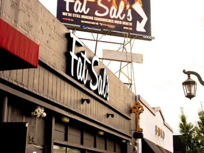Late-night destination serving over-the-top "fat sandwiches" stuffed with mozzarella sticks, fries, and multiple proteins on each hero. The Fat Buffalo packs buffalo chicken, mozz sticks, and fries into one indulgent sandwich.