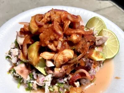 Crispy shrimp tacos, Aguachile tostada, Ceviche mixto