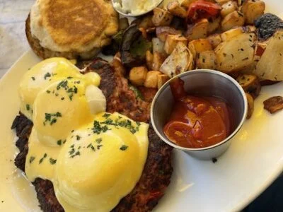 Woman-owned modern diner bringing Turkish-inspired twists to American breakfast classics, using organic produce and scratch-made preparations. The eco-conscious restaurant features bottomless mimosas, creative pancake variations, and the authentic Turkish menemen, all served in a bright space built sustainably around an existing tree.