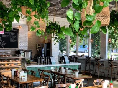 This fast-casual Mediterranean chain delivers customizable bowls and pitas with fresh ingredients and bold flavors at accessible prices. The build-your-own format lets diners mix proteins, dips, and toppings for healthy, quick meals perfect for beach-day fuel.