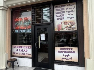 A bustling bakery café with a Persian-Mediterranean pastry counter and a menu of snacks, lunch plates, and tea service. Fresh-baked barbari, rotab dates, and cakes draw both regulars and curious passersby for breakfast and afternoon coffee breaks.