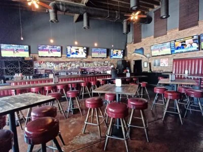 Brewpub from Brews Brothers owners features Cali Classic smashburgers alongside 37 beer taps, occupying the revamped Stout Burgers space with warm wood interiors. The brisket egg rolls and tapas-style small plates complement craft beer selections including house-brewed options.