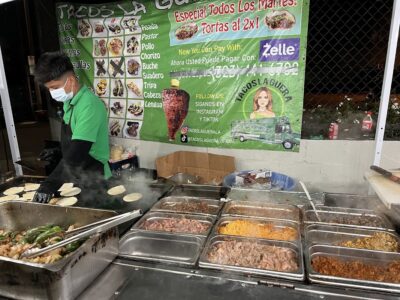 Sidewalk setup by Whole Foods with quick-fire asada and lively pastor. Expect a steady curbside flow, hot-off-the-plancha tortillas, and prices built for a second round.