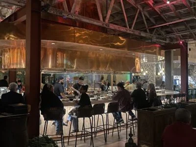 Seven kitchen stalls orbit a shared wood-fired hearth inside a cavernous West Adams food hall, backed by the Michelin-starred Maydan team out of D.C. The format rewards groups who want to split up, order from different counters, and reconvene around dishes that lean heavily on live-fire technique—clay-oven breads, wood-grilled proteins, charred vegetables. Expect a loud, high-energy room that functions more like a communal feast than a quiet dinner.