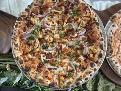 Naturally fermented sourdough-crust pies served inside a working shrine to late-'80s and '90s hip-hop, born directly from the Delicious Vinyl record label. The menu rewards groups who order across the specialty range—Slaughtahouse for heat, Rosa for balance—while weekend DJ sets turn the room into something closer to a listening party than a pizza parlor. West Adams regulars treat it as a default gather spot where the crust has actual chew and the walls have actual history.