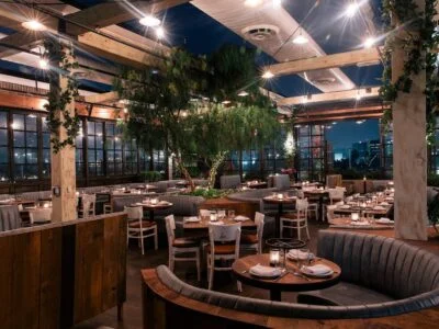 Rooftop steakhouse and sushi destination combining Tokyo's Toyosu Market seafood with premium steak cuts cooked tableside on hot rocks. The retractable rooftop offers stunning downtown LA views in the heart of the Design District.