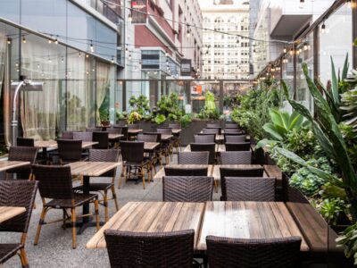 After-work staple pairing house margaritas with handmade tortillas and street-style tacos on a lively plaza. Happy hour runs multiple days with $7 taco trios and drink specials that draw FiDi crowds.