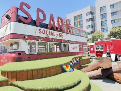 Korean-Japanese “Koja” rice-bun sandwiches served from a rotating truck at SPARK Social. The short-rib original and crispy chicken deliver big flavor in a portable format with plenty of outdoor seating.