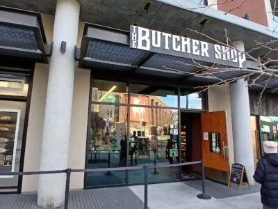 Modern butcher counter from the Niku team serving lunch-only burgers and fries alongside premium wagyu cuts to go. A swift, meat-centric option for working lunches near Showplace Square.